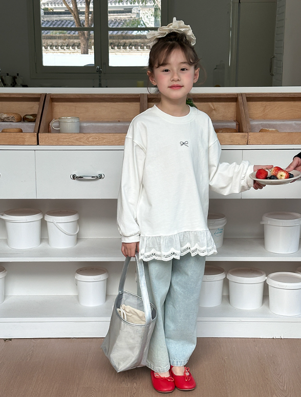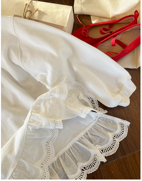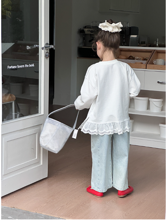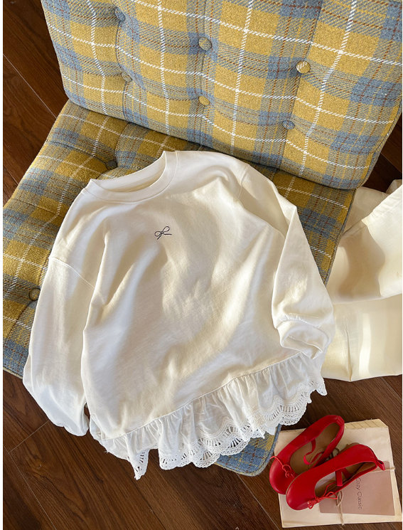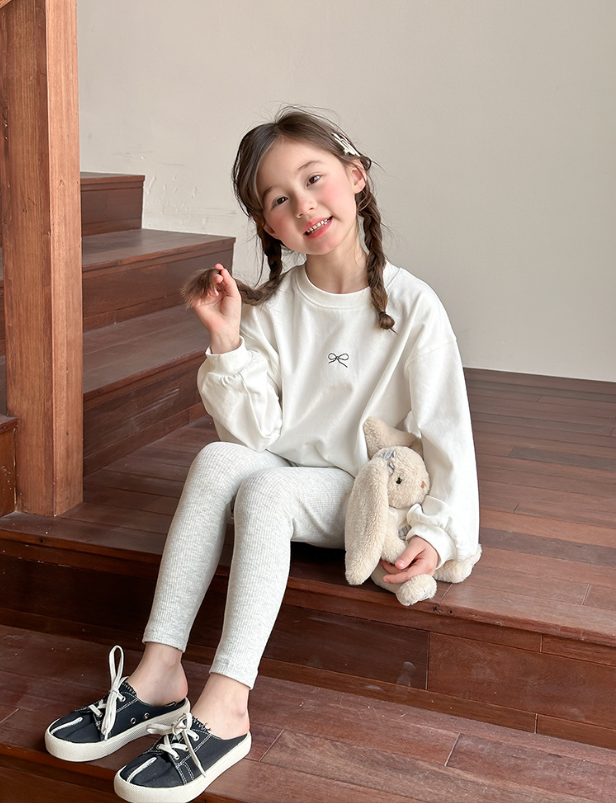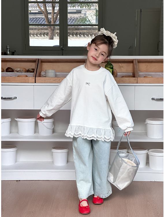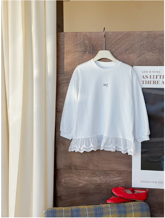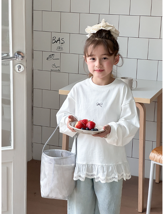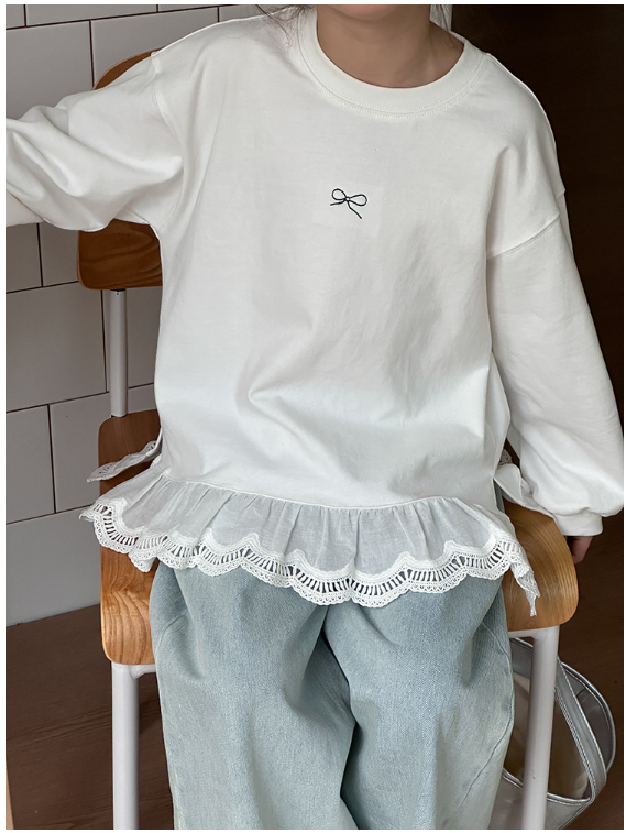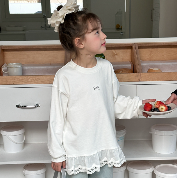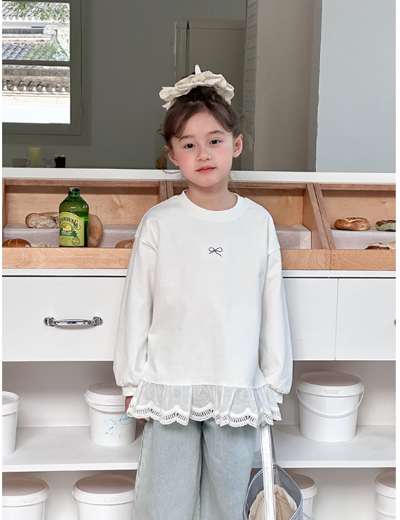 2025秋服新作韓国子供服 レース リボン柄tシャツ