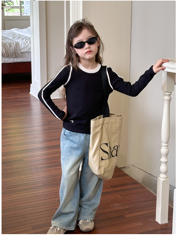 2026春服新作韓国子供服 ボーダー デニムパンツ