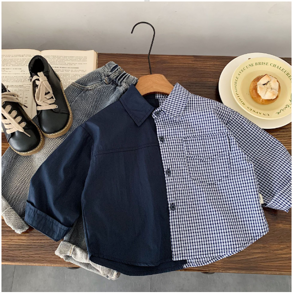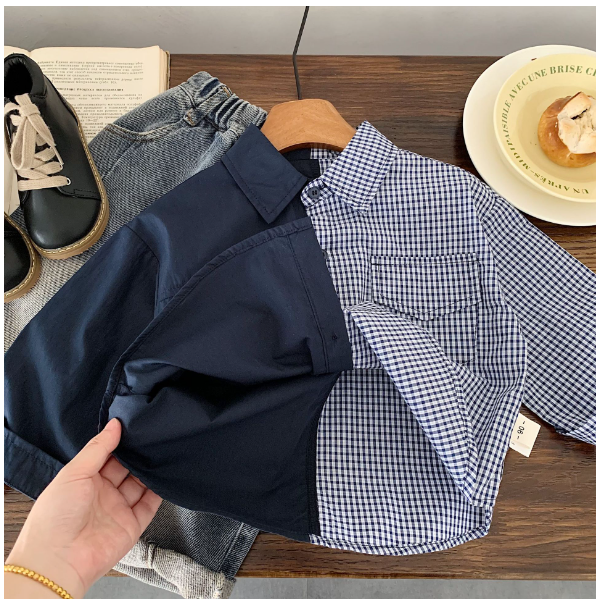 2025秋服新作韓国子供服 チェック柄 ブラウス