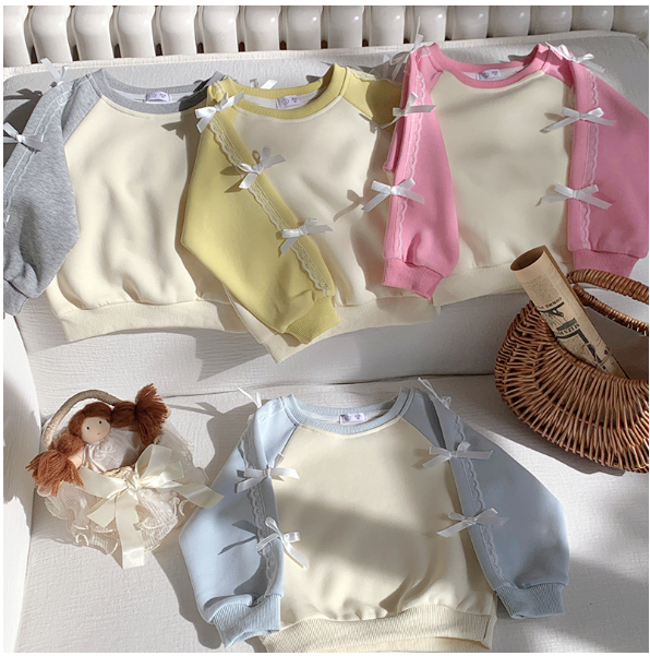2025秋服新作韓国子供服 リボン 4色長袖tシャツ