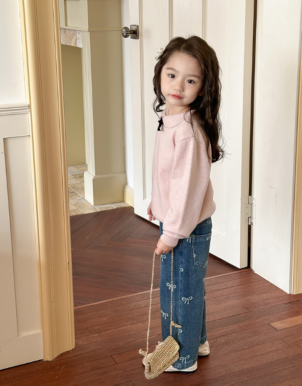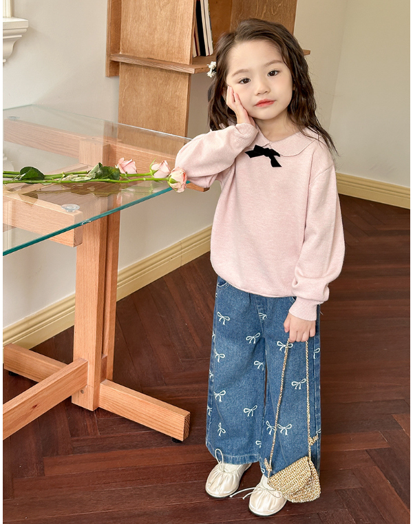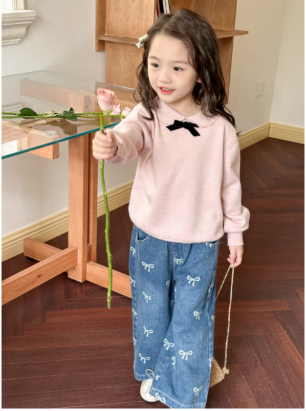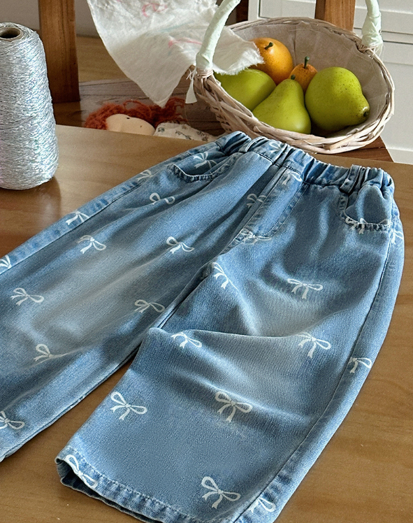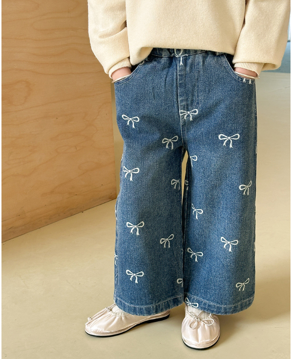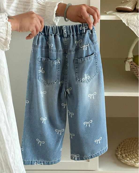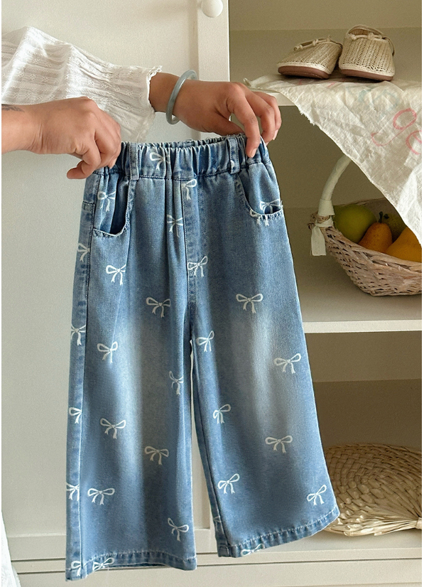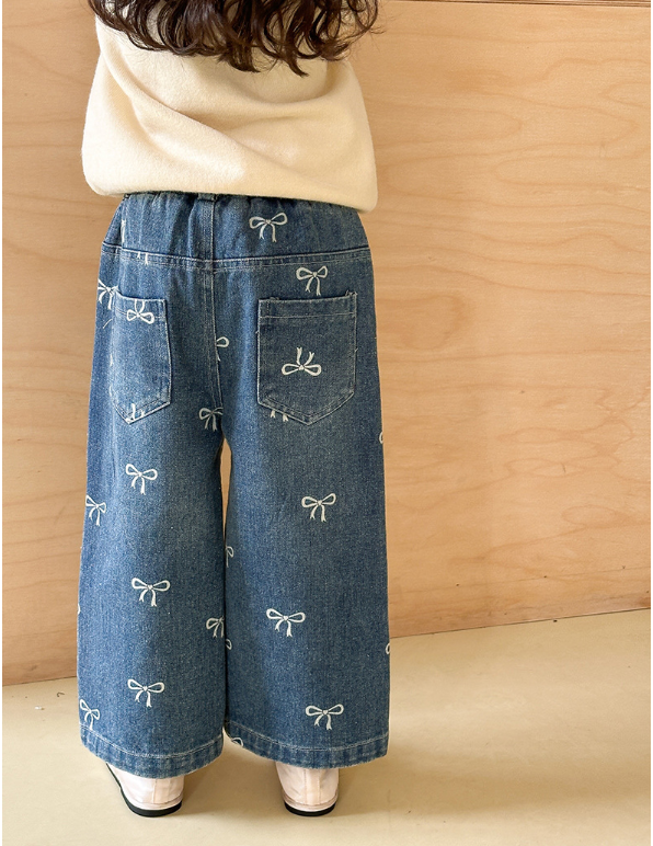 2025秋服新作韓国子供服 リボン柄 デニムパンツ