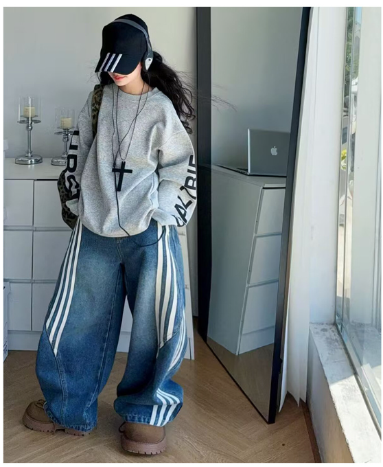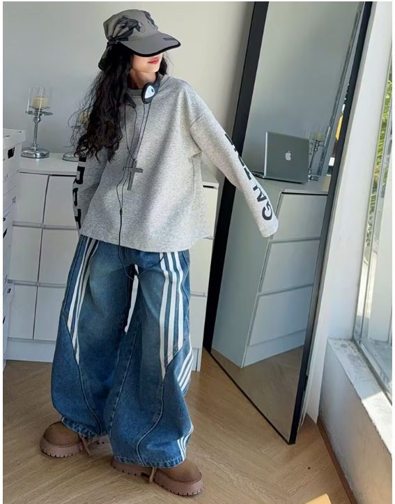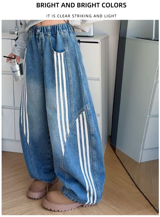 2026春服新作韓国子供服 ボーダー デニムパンツ