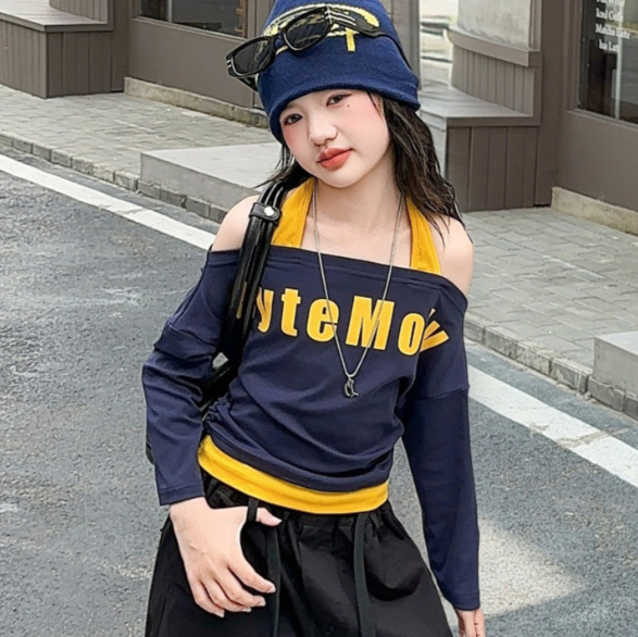 2025秋服新作韓国子供服 英字ロゴ トップス