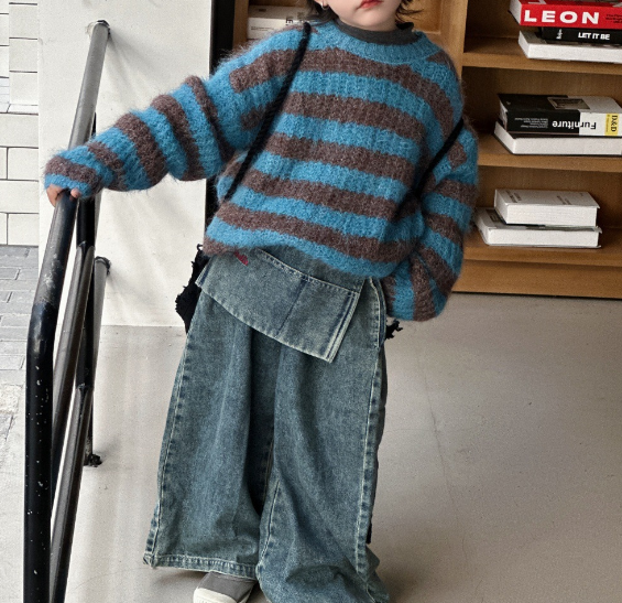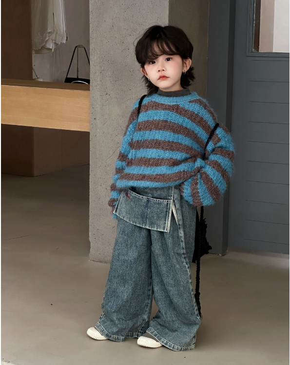 2026春服新作韓国子供服 ボーダー デニムパンツ