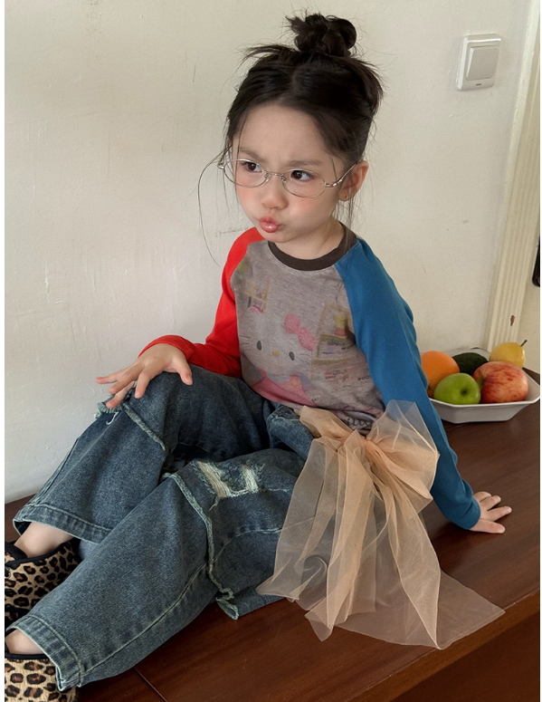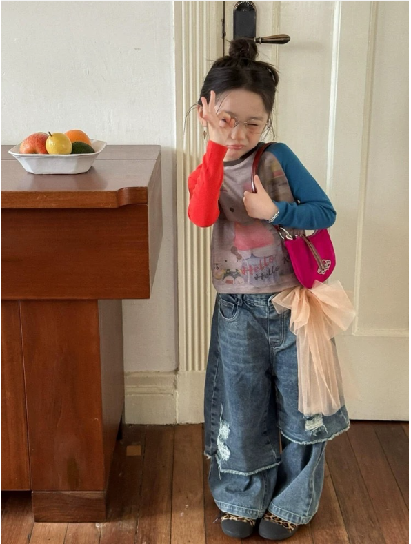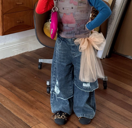 2026春服新作韓国子供服 ダメージ デニムパンツ
