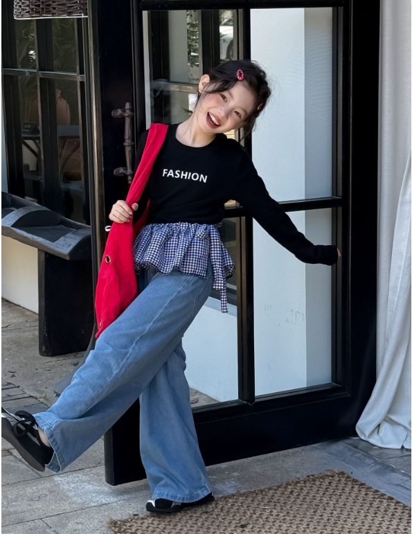 2025秋服新作韓国子供服 FASHION柄 長袖tシャツ