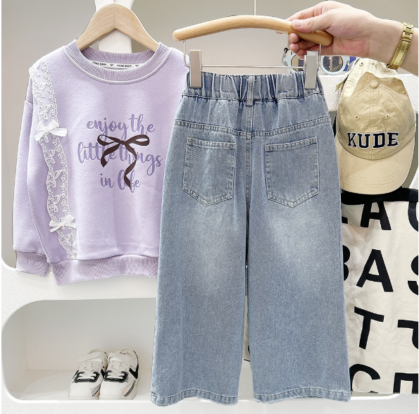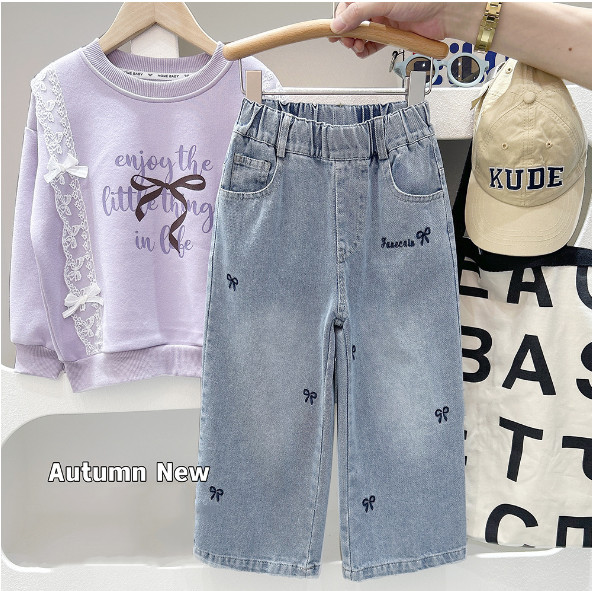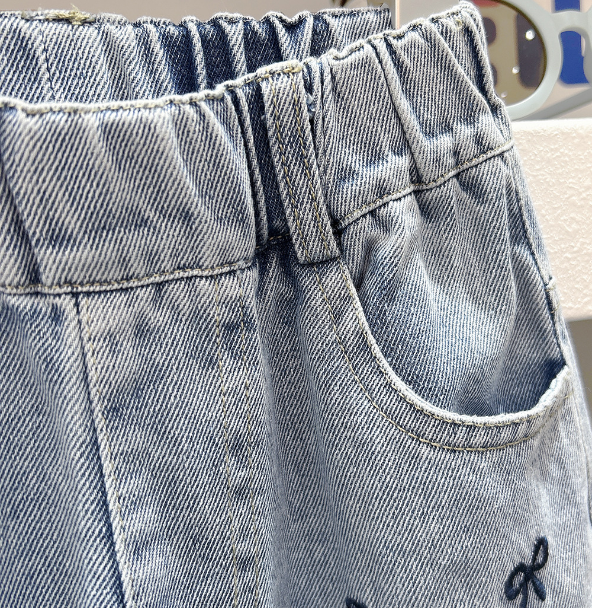 2025秋服新作韓国子供服 刺繍 リボン柄 デニムパンツ