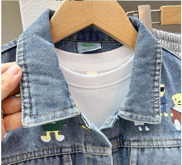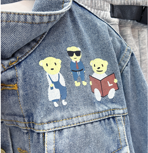 2025秋服新作韓国子供服 くまちゃん柄 デニムジャケット