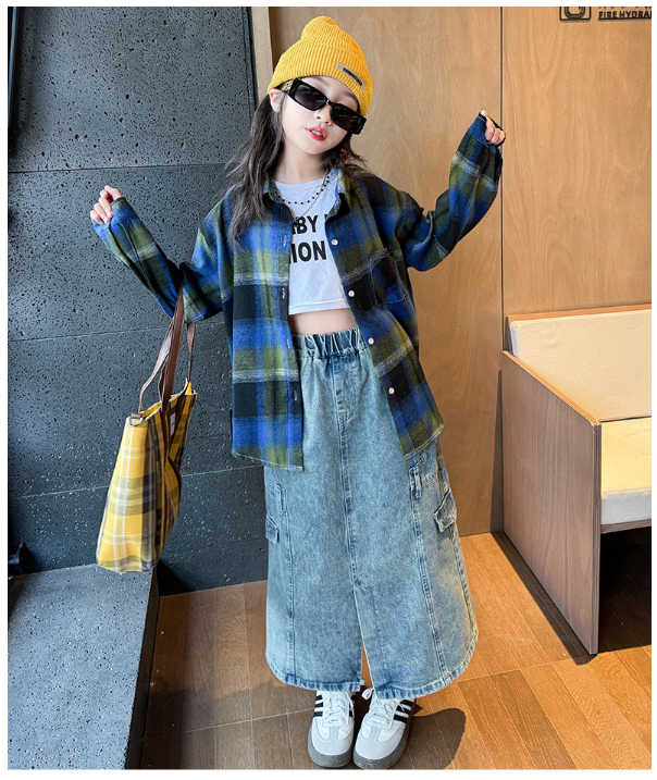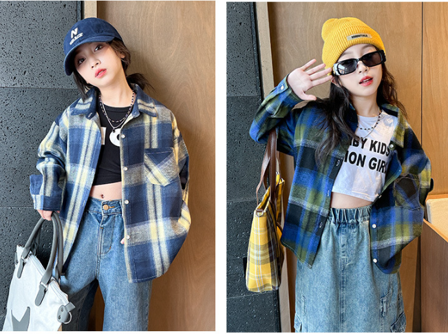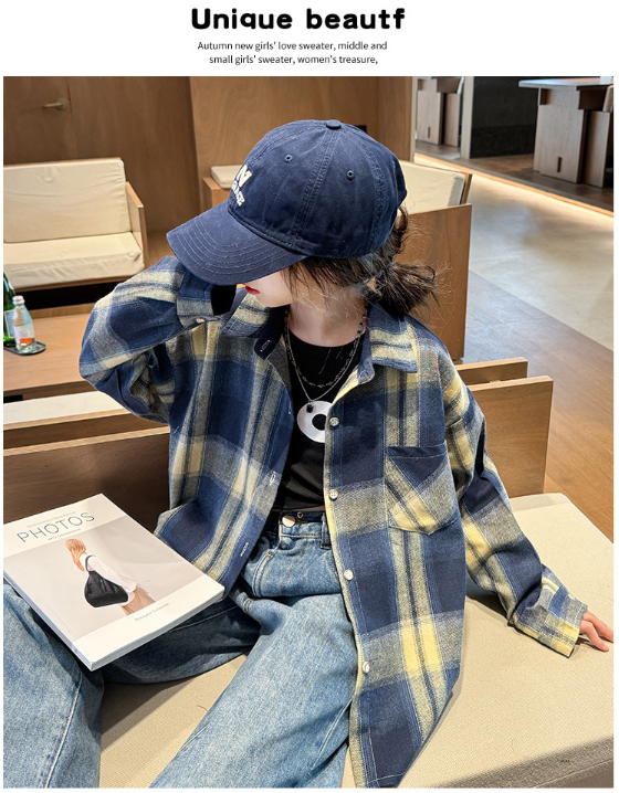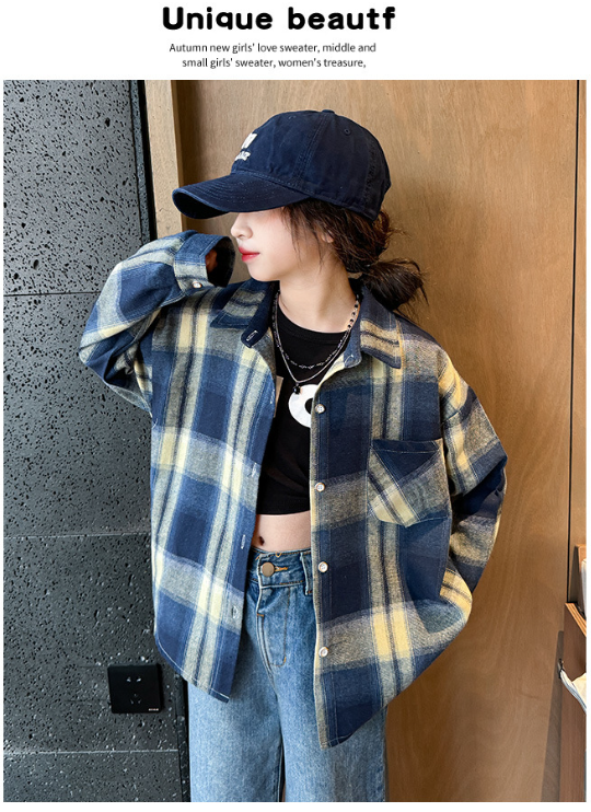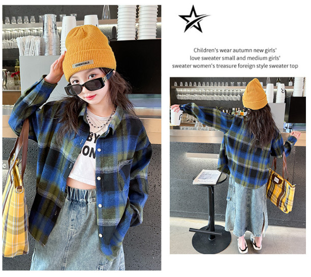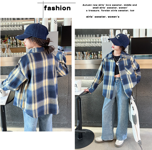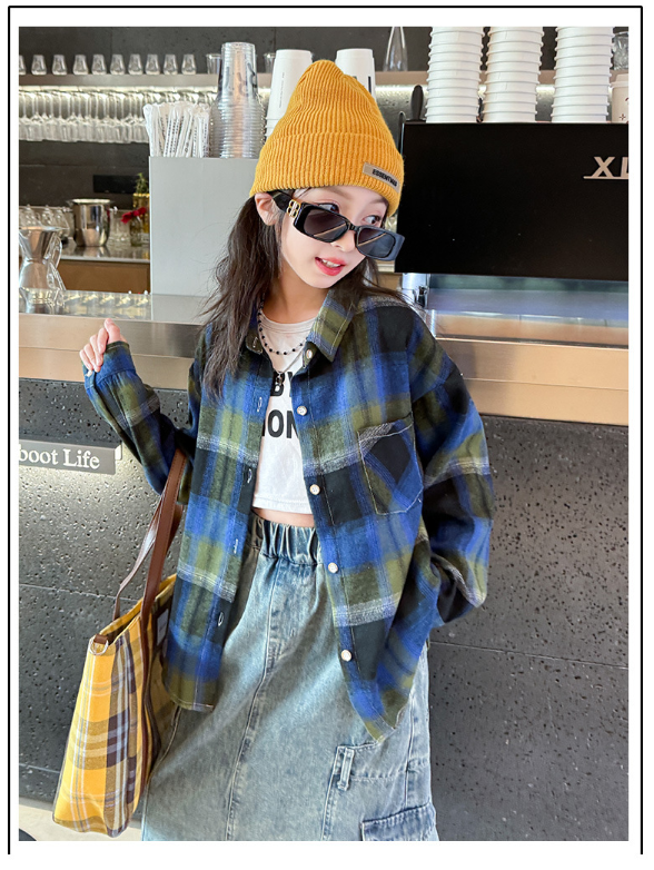 2025秋服新作韓国子供服 女の子 チェック柄 ブラウス