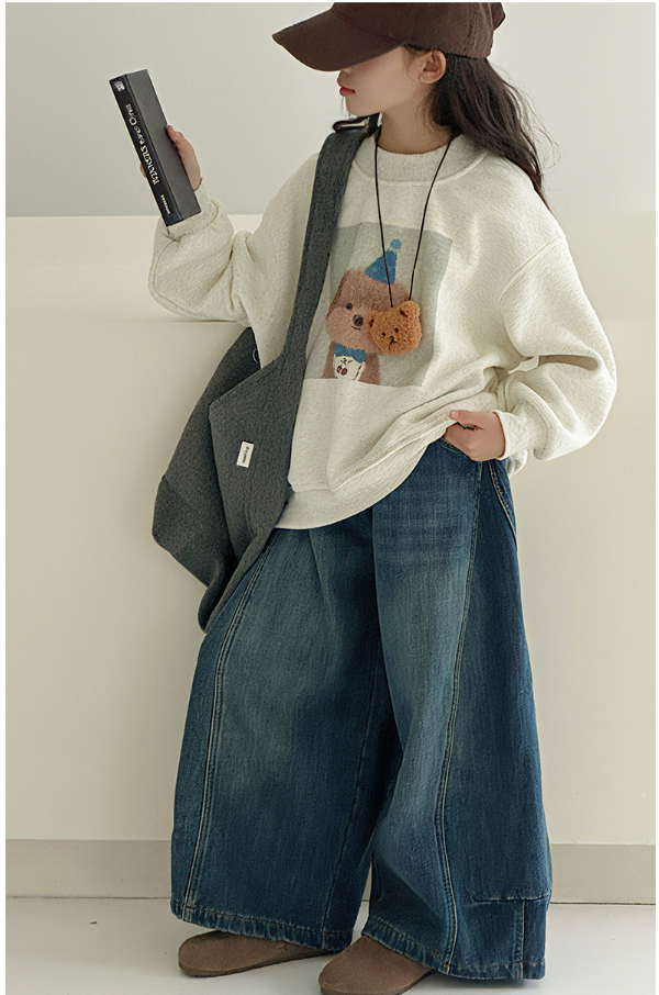 2026春服新作韓国子供服 くまちゃん柄 デニムパンツ