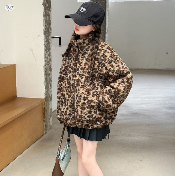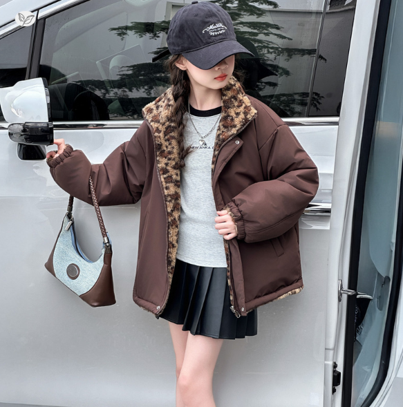 2025冬服新作韓国子供服 豹柄 リバーシプル アウター