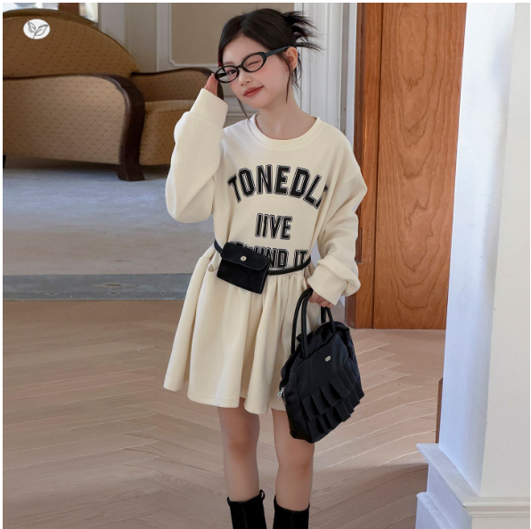 2026春服新作韓国子供服 英字ロゴ ワンピース