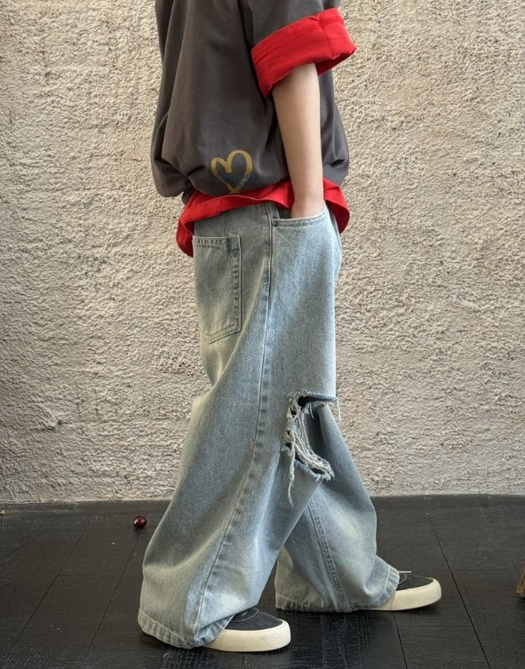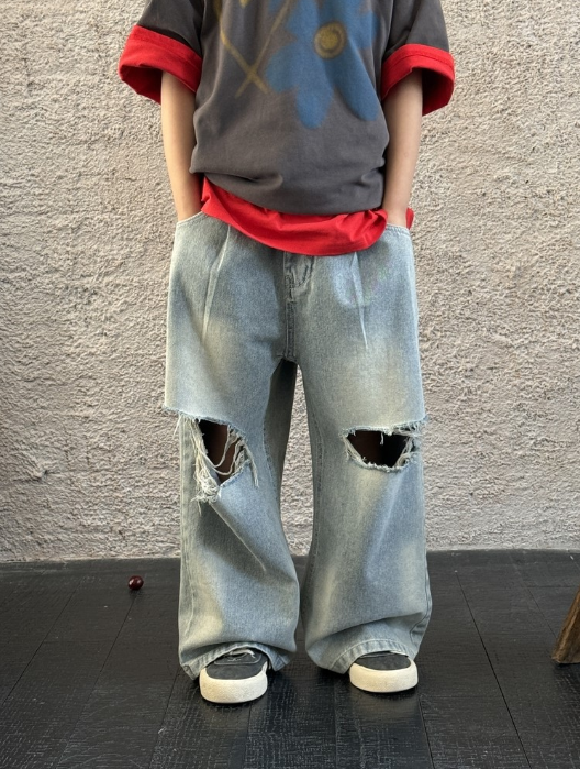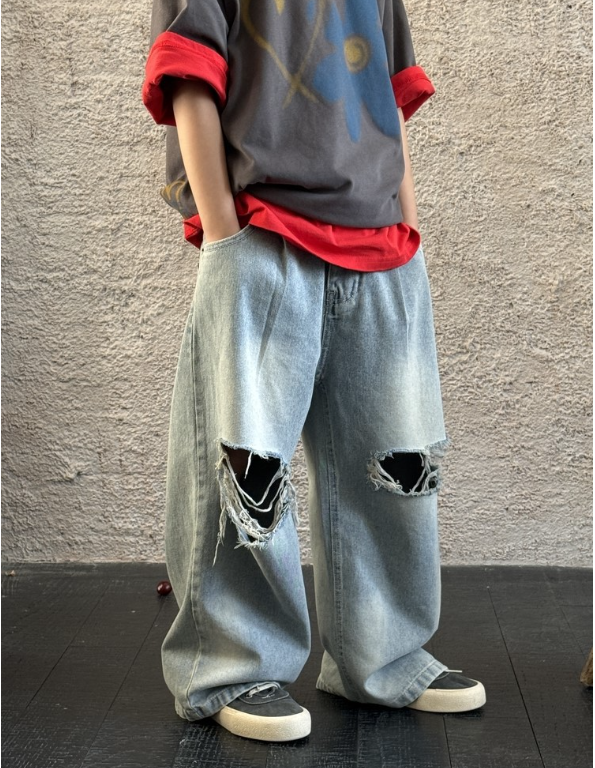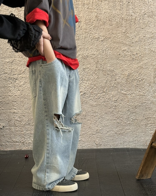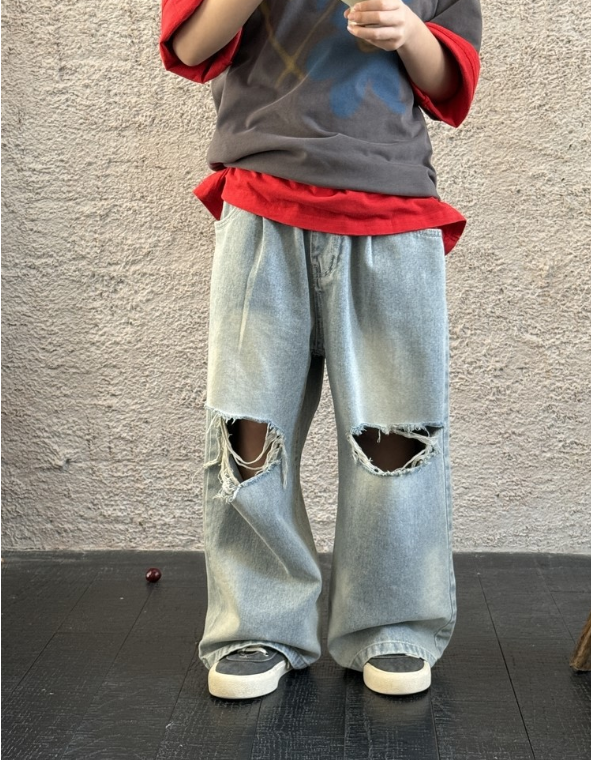 2026春服新作韓国子供服 ダメージ デニムパンツ