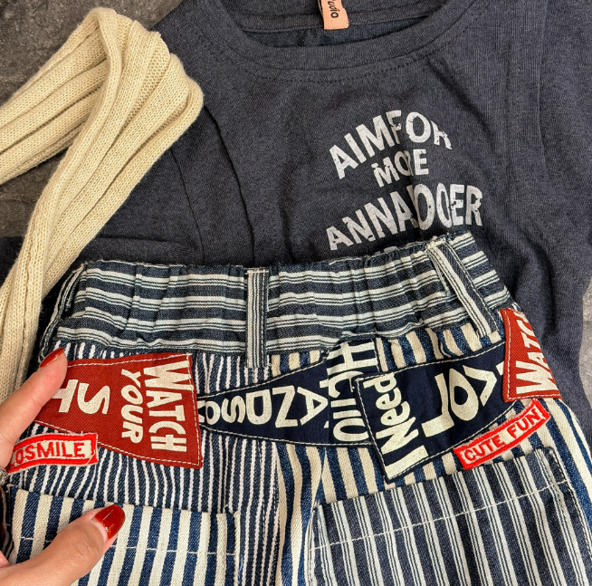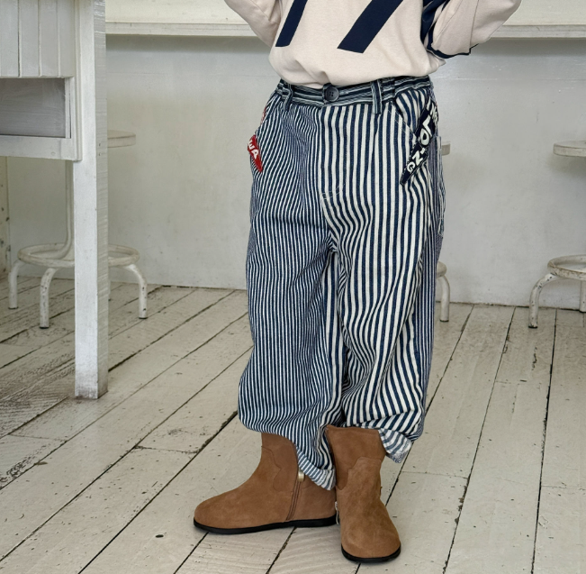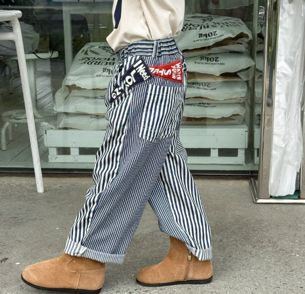 2026春服新作韓国子供服 ボーダー デニムパンツ
