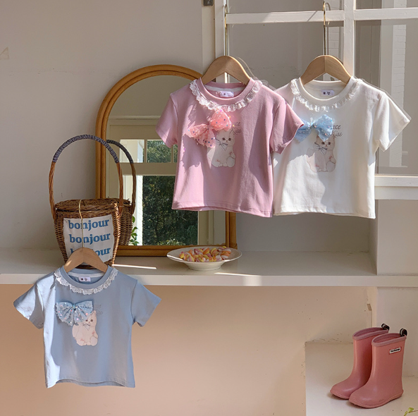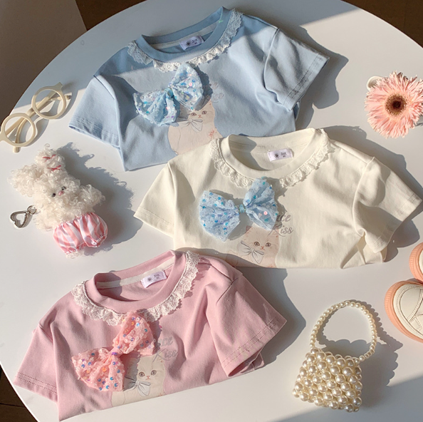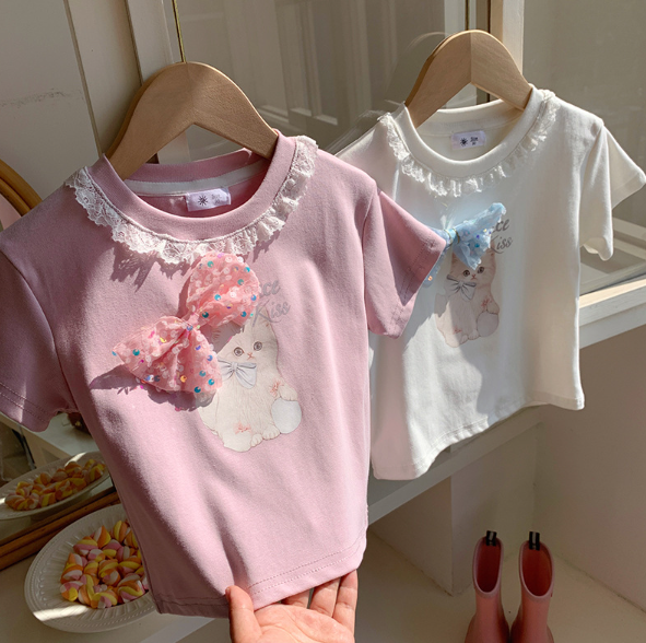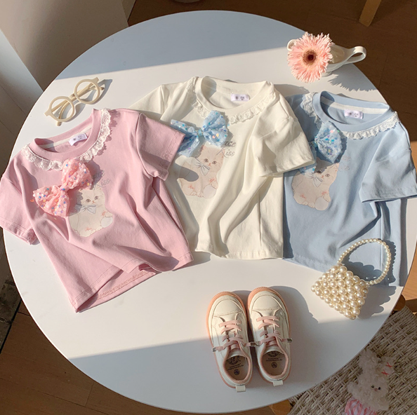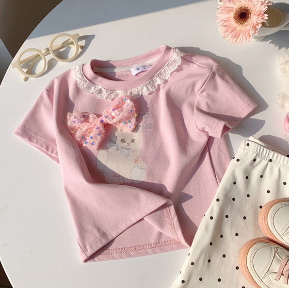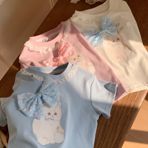 2026夏服新作韓国子供服 Cat柄 半袖Tシャツ