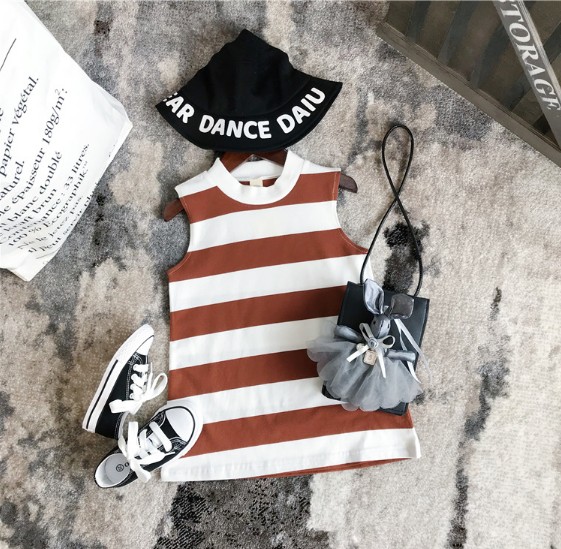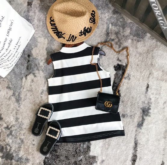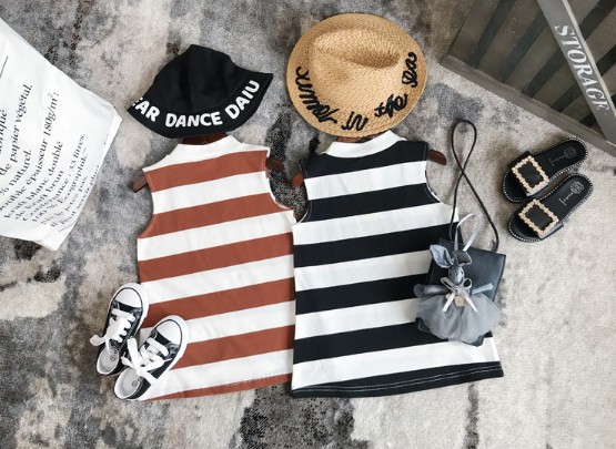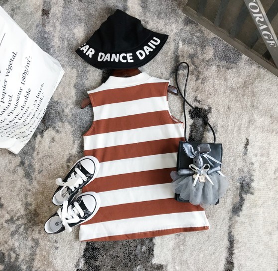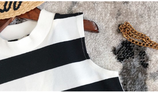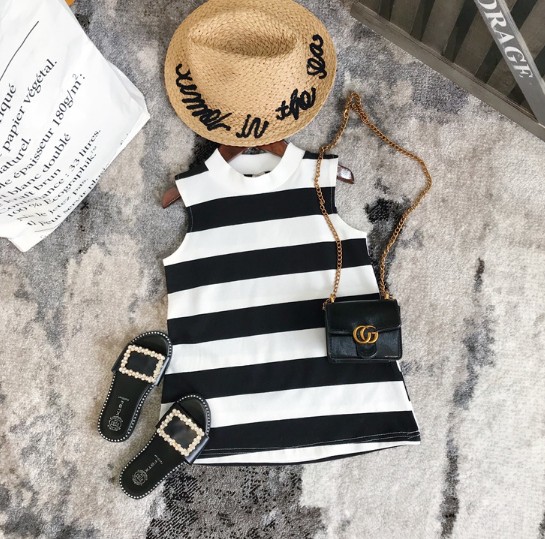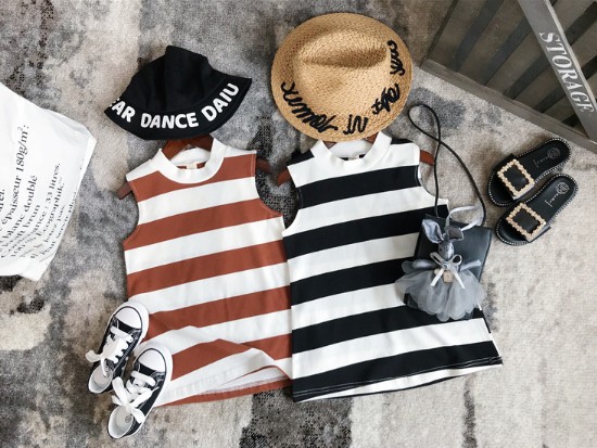 2018夏服新作韓国子供服 女の子 ボーダー ワンピースM