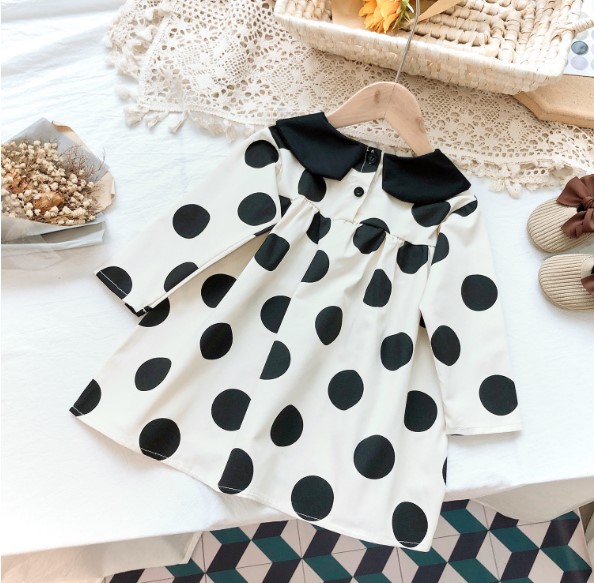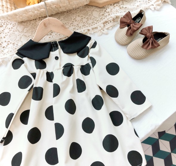 2020秋服新作韓国子供服 女の子 ドット柄 ワンピース